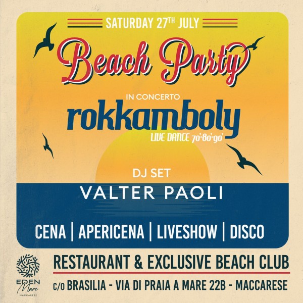 Eden Mare Maccarese sabato 27 luglio – Cena e Musica anni 80