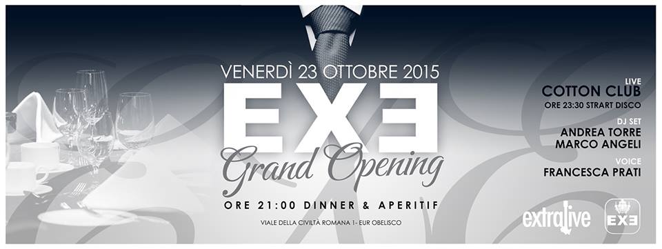 Exe venerdì 23 ottobre 2015 – Aperitivo cena + discoteca – Dj Andrea Torre