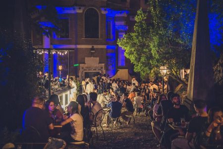 Gatsby Ponte Milvio nel cuore di Villa Brasini il giardino all’aperto con tavolini e divanetti dove poter mangiare e bere ottimi drink al fresco estivo delle serate Romane.