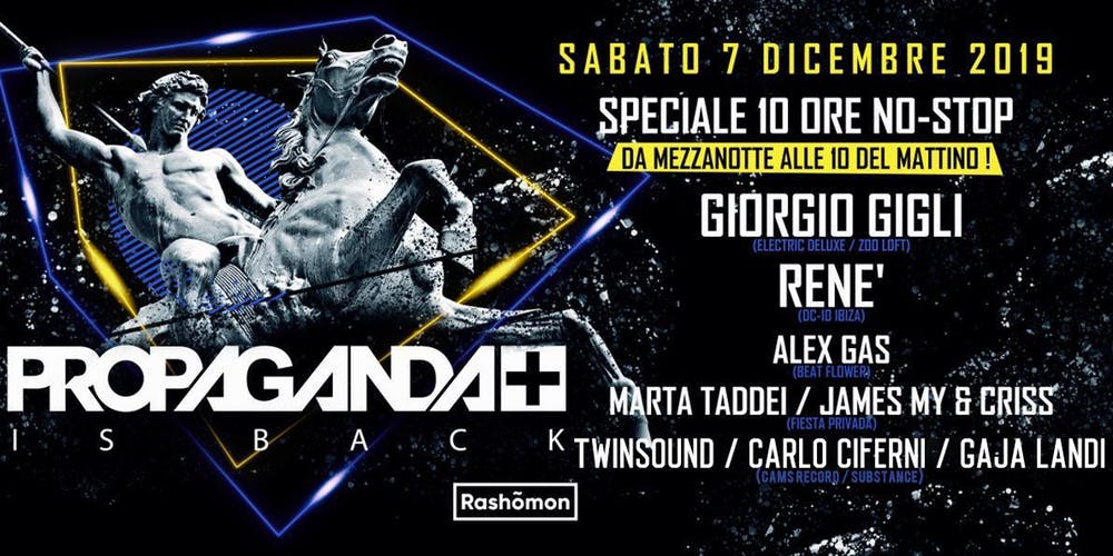 Questo sabato al Rashõmon Club Propaganda evento TECNO fino al giorno dopo!